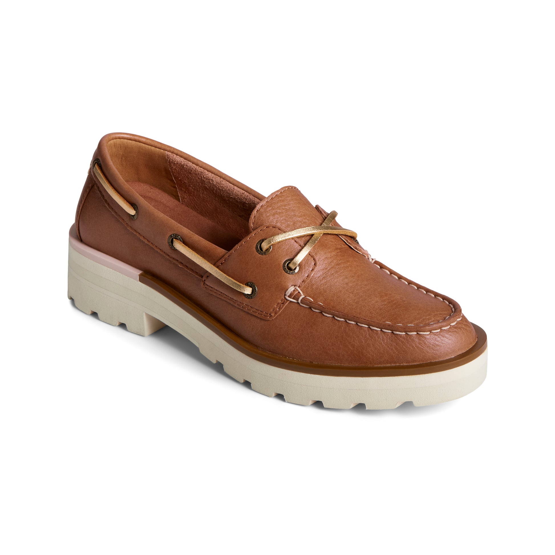 รองเท้าหนังแบบสวม ผู้หญิง Chunky Boat 2-Eye Leather